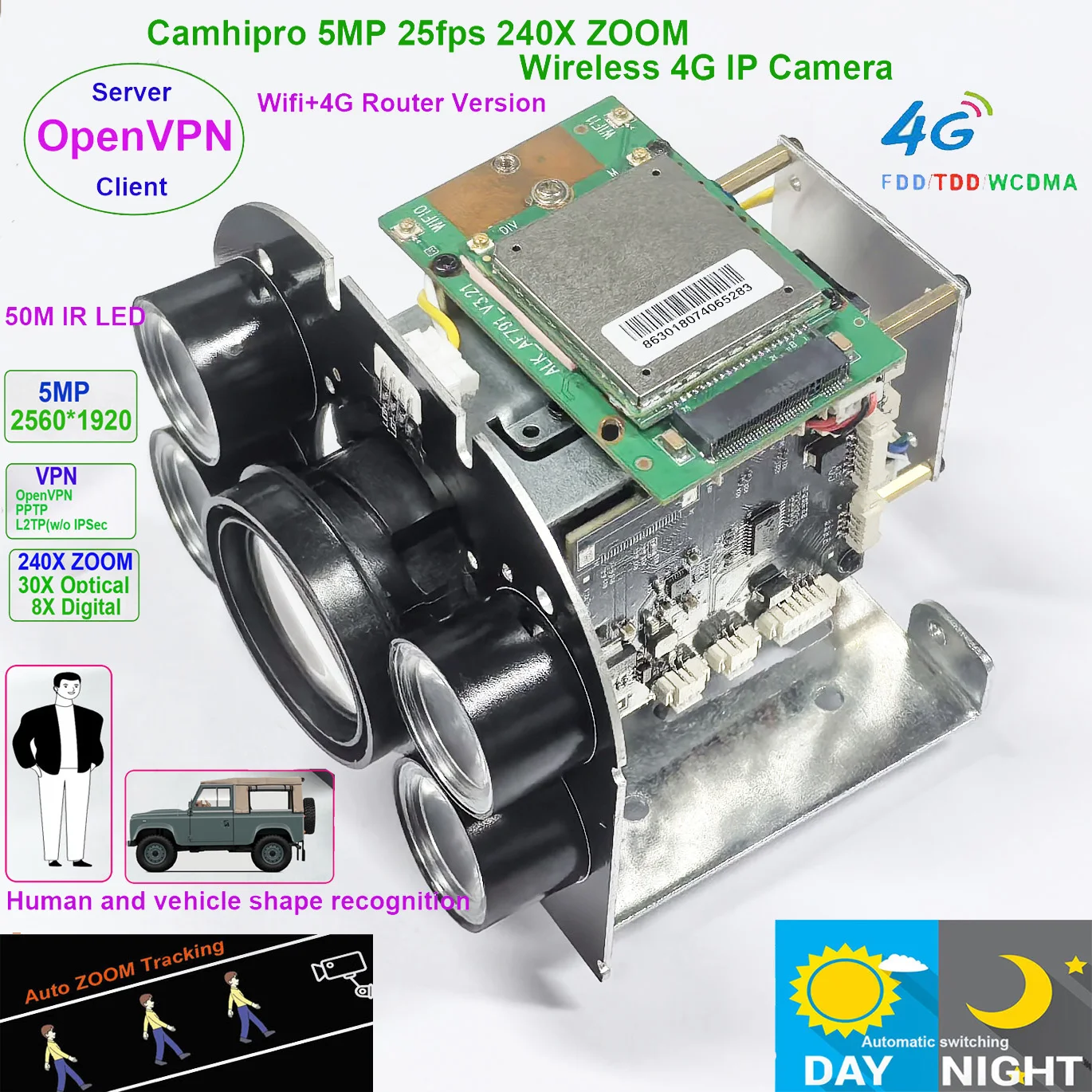 Це високопродуктивне рішення для сполучення мікросхем з використанням GOKE 7205V300+IMX335. Найвища роздільна здатність підтримує 5 МП (2560 * 1920) та передачу 25 кадрів у реальному часі. Підтримка подвійної швидкості передачі даних. Оснащена об'єктивом високої чіткості з 30-кратним оптичним зумом. Вона підтримує функцію цифрового зуму до 10-кратного. Ця камера, у поєднанні з модулями Wi-Fi та 4G, може реалізувати функції з'єднання Wi-Fi та 4G (залежно від того, чи встановлені вони на вашій камері). Камера підтримує режим перемикання день/ніч та кілька режимів керування освітленням. Підтримує ONVIF, RTSP, FTP, SMTP та інші протоколи, з чудовою сумісністю.