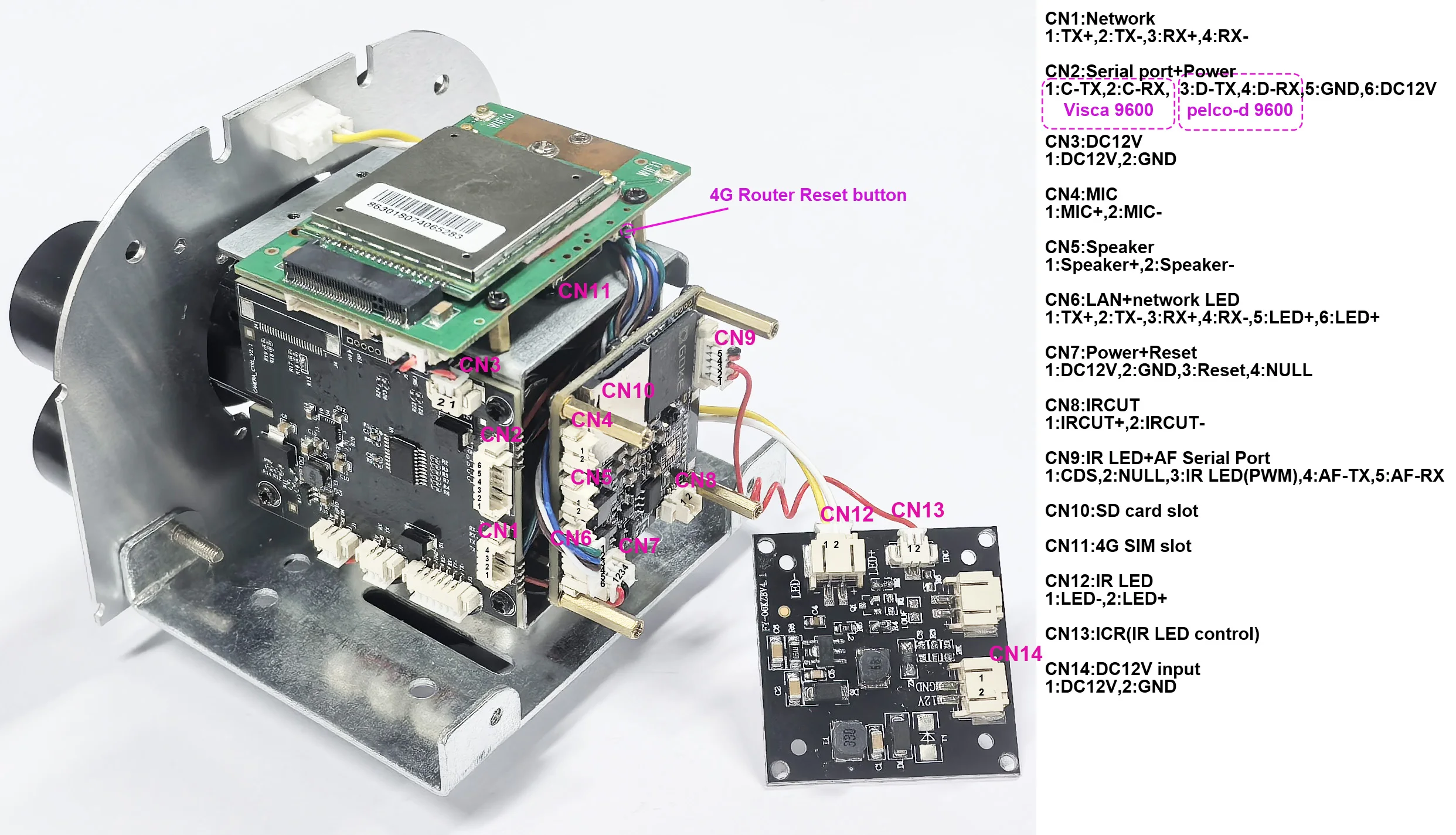 1. Коли камера перемикається з кольорового режиму в режим інфрачервоного нічного бачення, на порт CN13 (ІЧ-світлодіод) подається напруга 3 В для керування пасивною активацією плати інфрачервоного світлодіода.